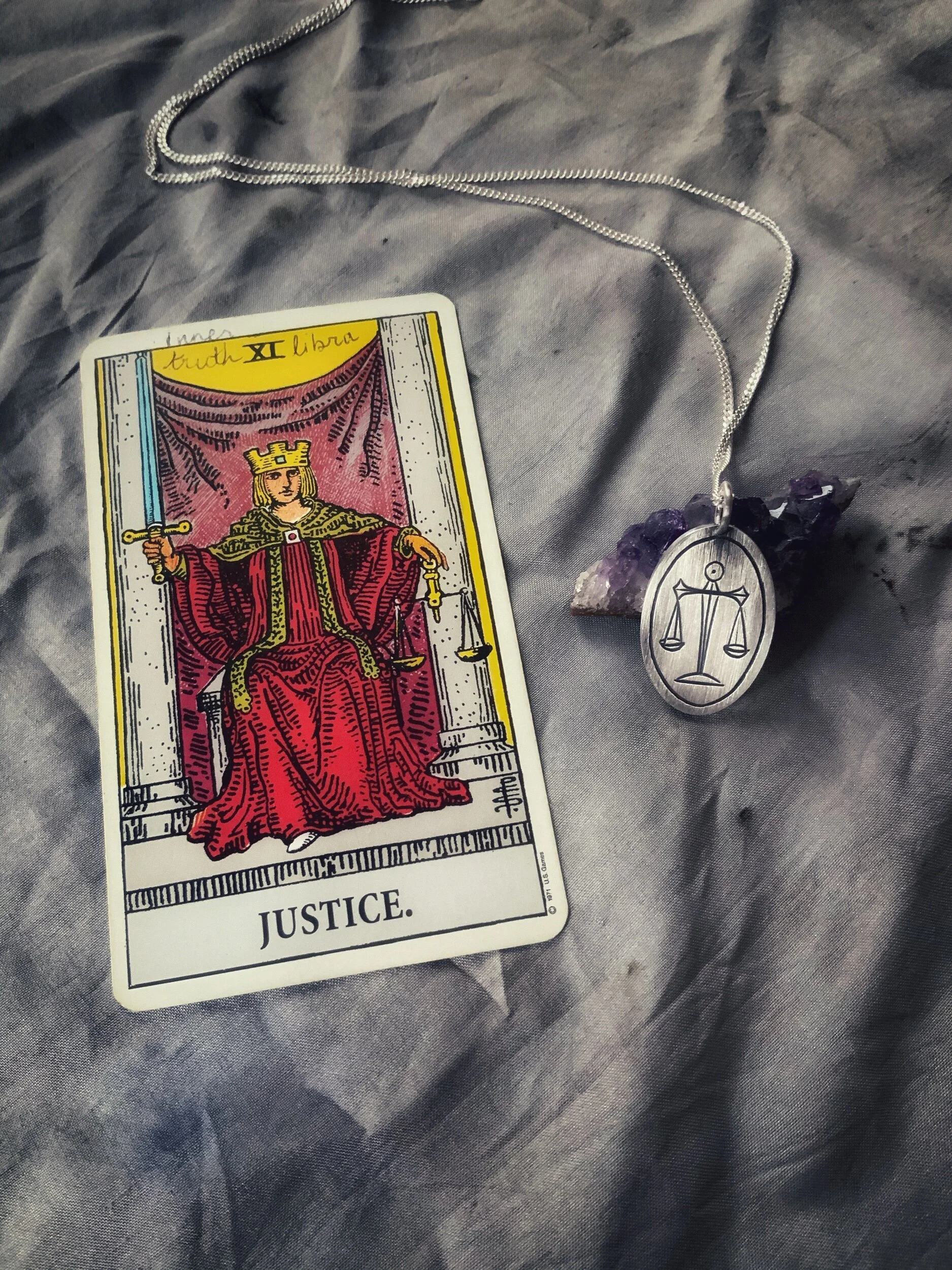 The Justice card is the card that relates to the zodiac sign of Libra and the constellation of the scales. Libra is ruled by the planet Venus and has much to do with relating, diplomacy, seeing the other side, and creating peaceful and harmonious environments. Libra is sometimes trolled as a sign that is not good at making decisions because both sides of a situation are so deeply considered. But is a quick decision “better” than a well-considered one?
